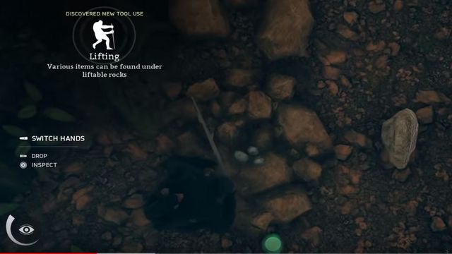 Палка также может быть использована для подъема тяжелых камней. Подойдите к любой тяжелой скале и нажмите А, чтобы поднять скалу, аналогично, если вы не видите опцию подъема, вам нужно поменять руки. Вы можете обнаружить различные новые предметы под камнями тоже.